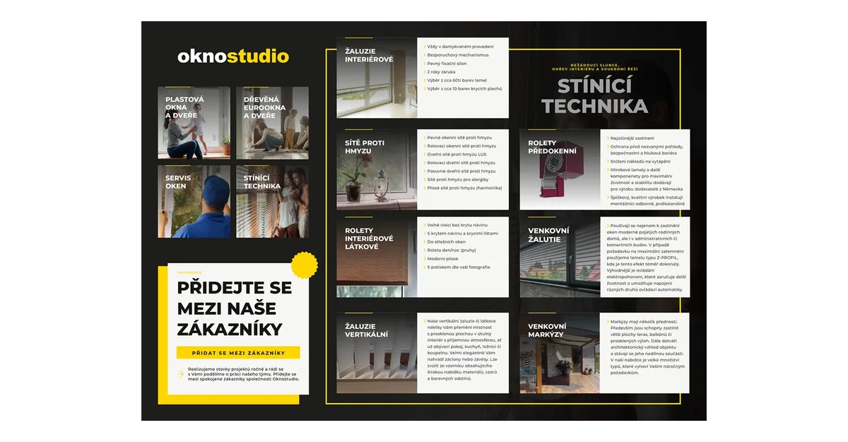 Jsme grafické studio s dlouholetou historií od roku 2008, které realizovalo stovky úspěšných projektů pro spokojené zákazníky po celé České republice. Naše práce je založena na důkladném pochopení cílové skupiny a efektivní marketingové komunikaci, což nám umožňuje vytvářet designy, které nejen zaujmou, ale také přinášejí výsledky. Jsme vám stále k dispozici pro jakékoliv potřeby v oblasti grafického designu.