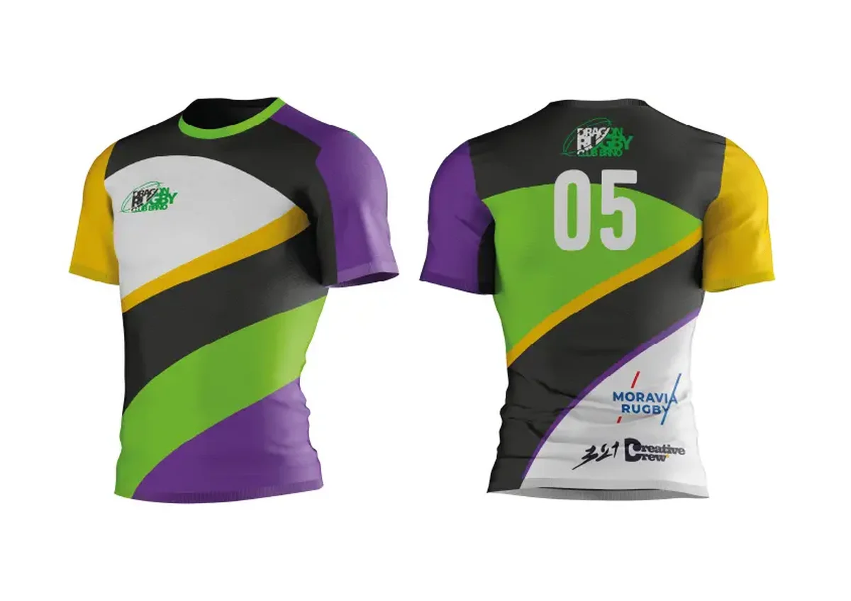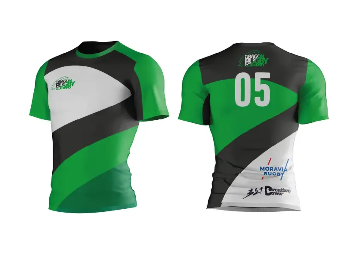Grafika pro sérii dresů Dragon Rugby spojuje týmovou identitu s moderním a dynamickým designem. Návrh dresů kombinuje výrazné barvy, odvážné linie, což vytváří silný vizuální dojem a podporuje týmového ducha. Každý detail grafiky je pečlivě promyšlen, aby nejen zvýšil atraktivitu dresů, ale také aby vyjadřoval energii a odhodlání týmu, čímž posiluje značku Dragon Rugby jak na hřišti, tak mimo něj.