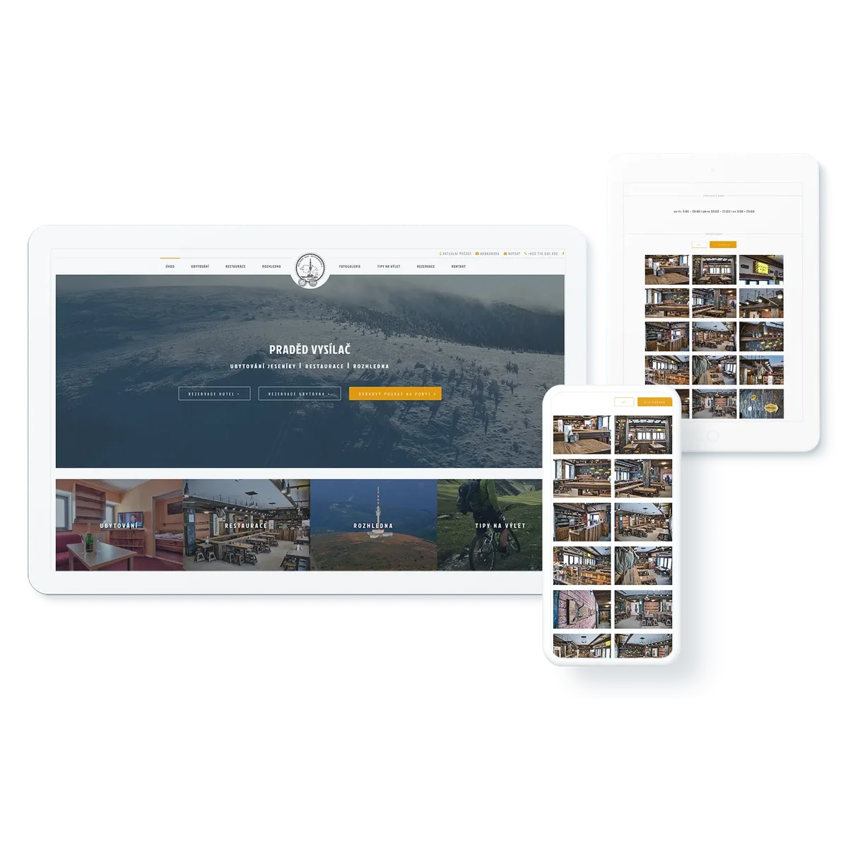 Atraktivní a přehledný design: Design webu by měl být moderní, atraktivní a přehledný. Použití kvalitních fotografií interiéru, exteriéru, pokrmů a pokojů je zásadní pro vytvoření vizuálního dojmu. Barvy, typografie a grafické prvky by měly odrážet atmosféru a styl vašeho zařízení.